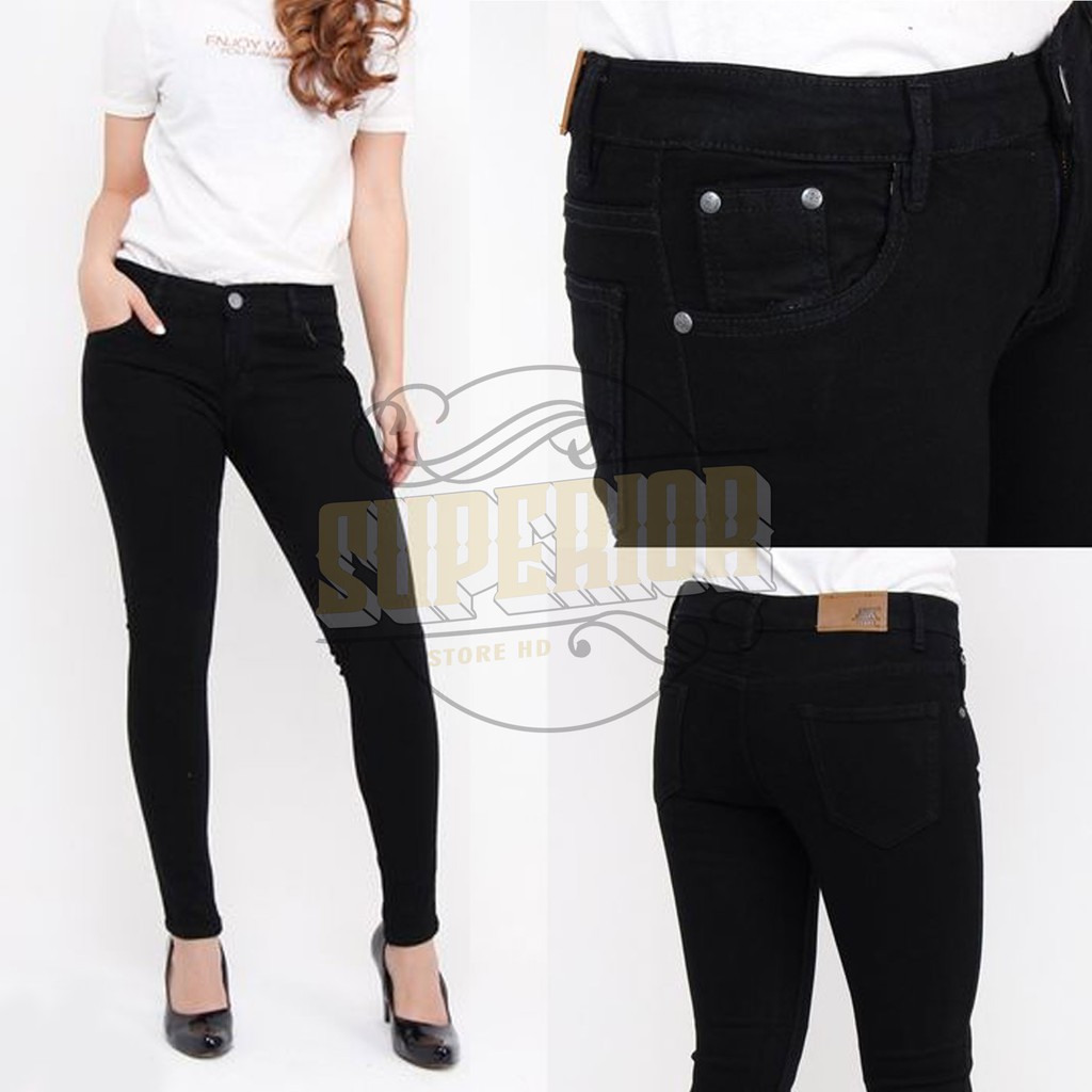 Celana Jeans Pensil Wanita Hitam Ukuran 27 34 Shopee Indonesia