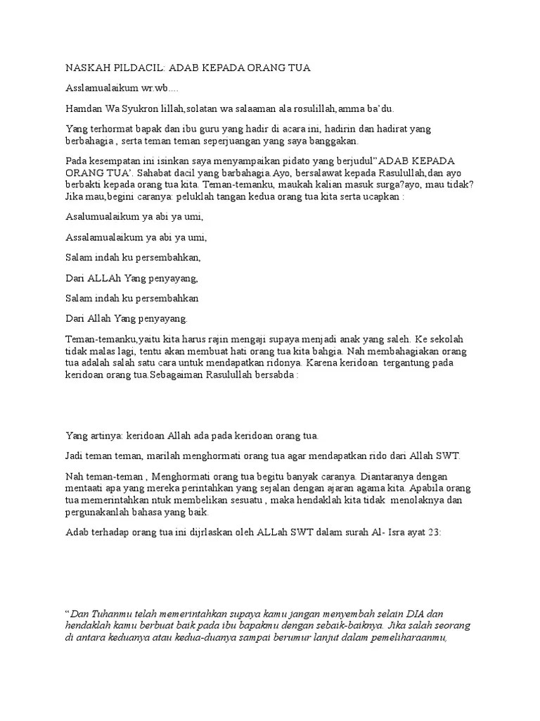 Teks Pidato Pildacil Tentang Adab Kepada Orang Tua Berbagi Teks Penting Cute766