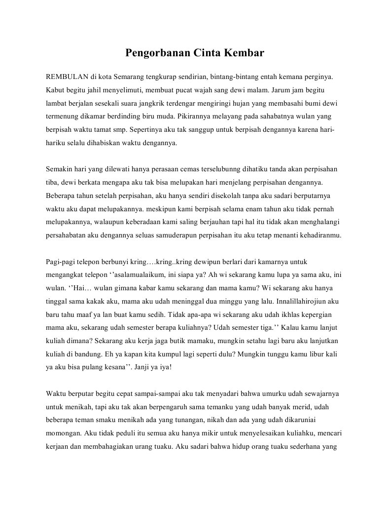 Ghitayu_sasmita Sebelumnya adm peringatkan. Ia memutuskan untuk pulang dan bekerja di kota asalnya agar bisa tinggal bersama dengan umi dan abinya yaitu di bandung. Cerpen Artikel Utama Cerpen Cinta dan Pernikahan yang Dibayangkan 5 April 2017 1649 Diperbarui.