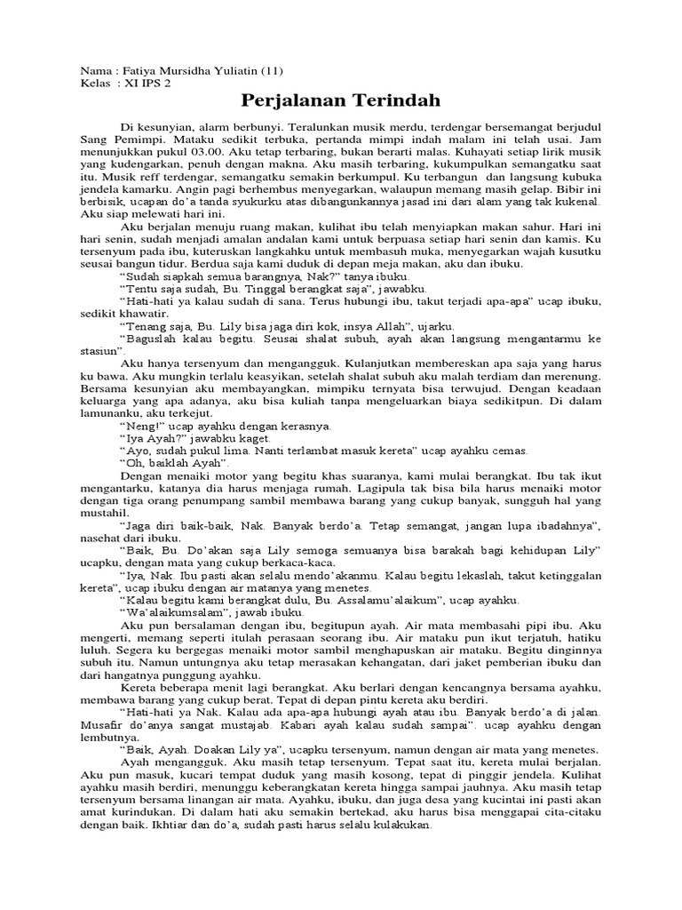 Perjalanan Terindah Cerpen Unsur Intrinsik Adan Ekstrinsik
