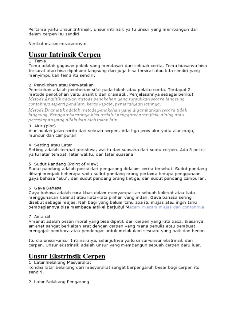 Cerpen Indonesia Beserta Unsur Instrinsik Dan Ekstrinsik