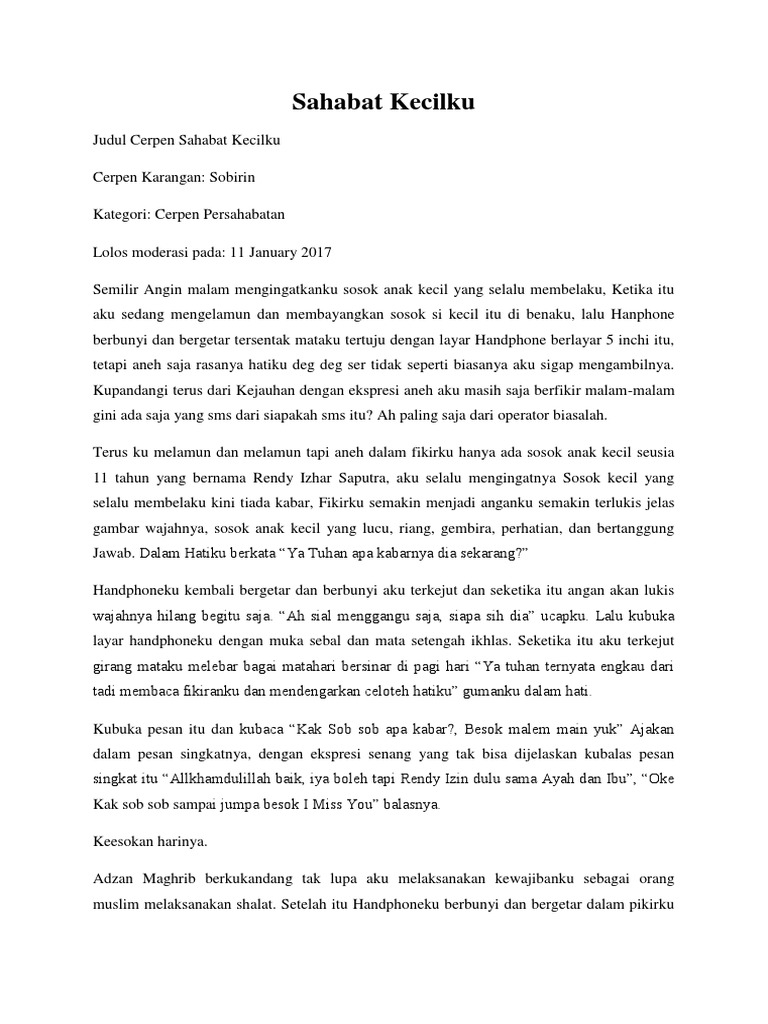 Doc Cerpen Sahabat Kecil Masa Kecilku Septian Raha Academia Edu