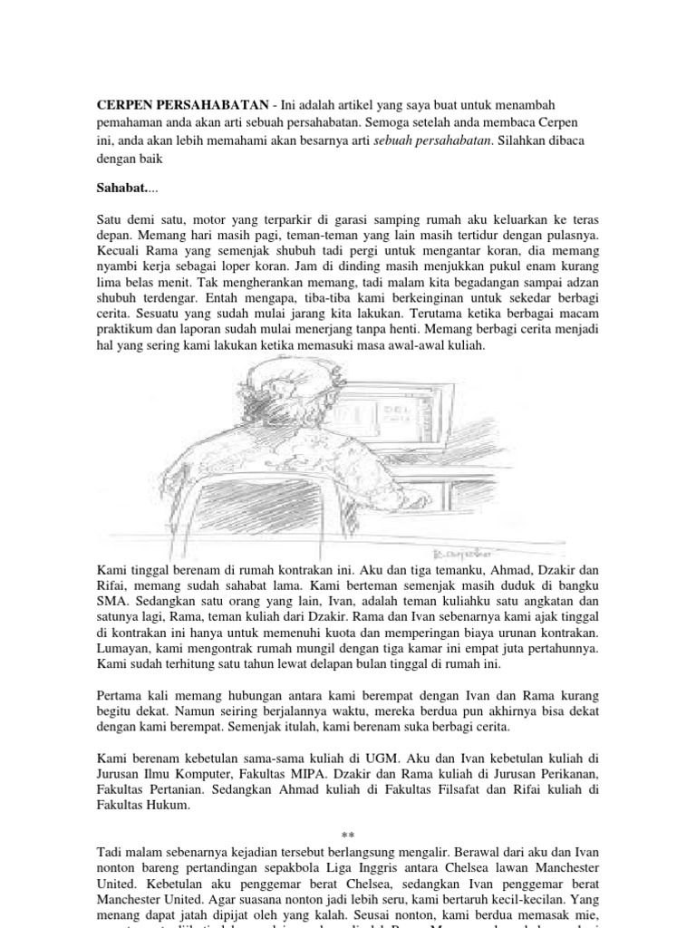Ternyata mereka berdua adalah sahabat. 13 Cerpen Persahabatan Youll Never Know. Aku memiliki sahabat bernama Andre yang merupakan teman setia dan sekelas sejak di bangku sekolah dasar.