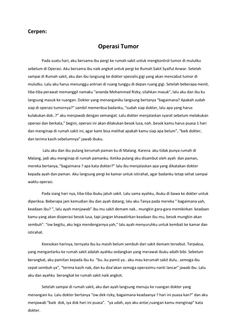 Cerpen tentang ibuku. Kumpulan beberapa contoh cerpen pengorbanan ibu di bawah ini saya dedikasikan untuk kamu semua agar senantiasa mengingat dan kembali berpikir agar semakin sadar akan pengorbanan ibu. Namaku adya azahra yang biasa dipanggil dya. 25 November 2018 Di suatu perkampungan yang dipenuhi dengan sawah ada sebuah keluarga yang tinggal secara harmonis.