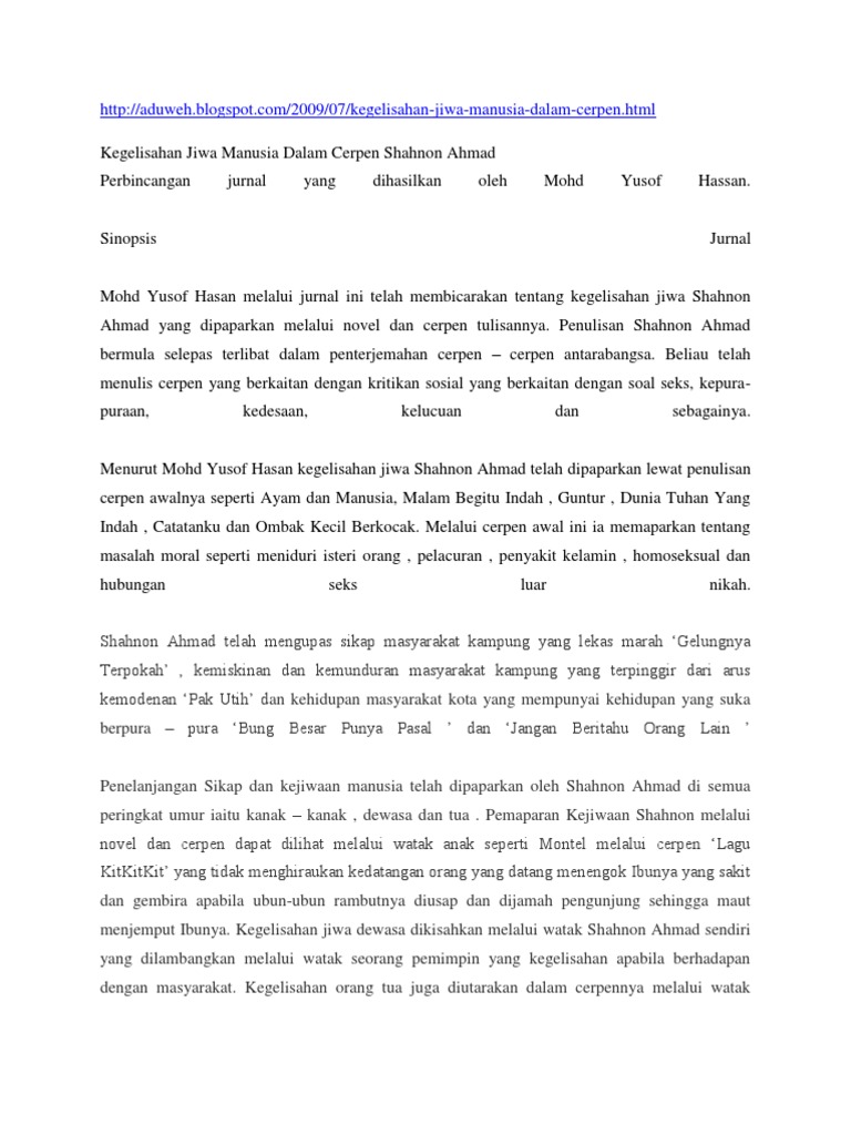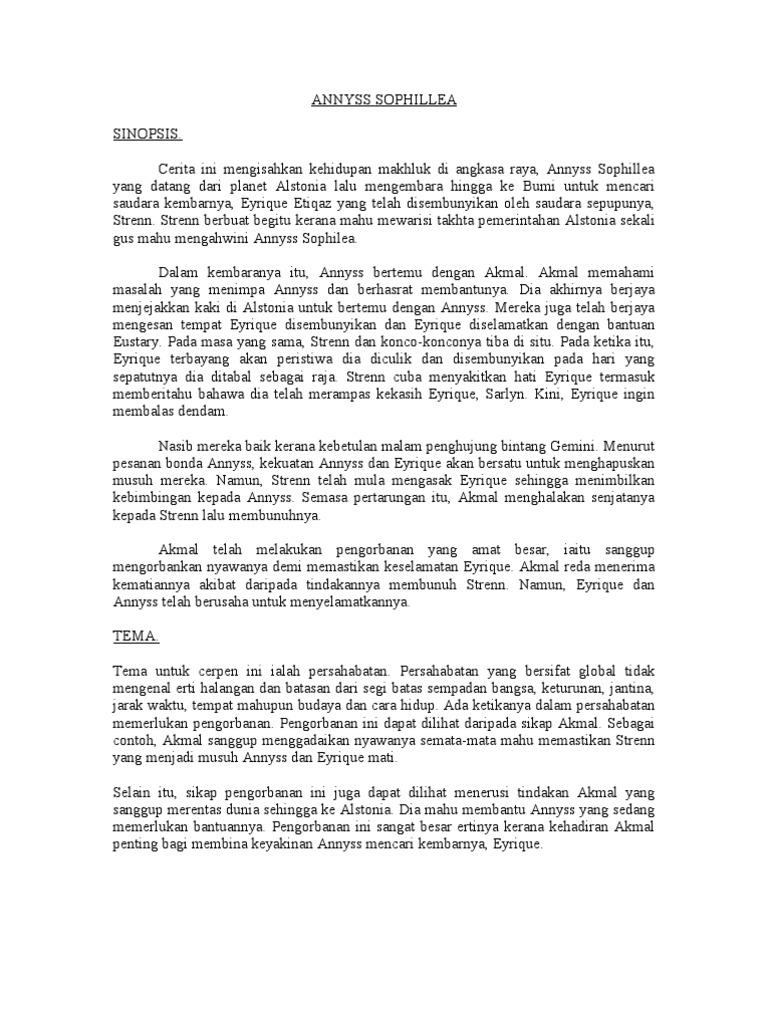 Komsas Tingkatan 4 Cerpen Annyss Sophilea