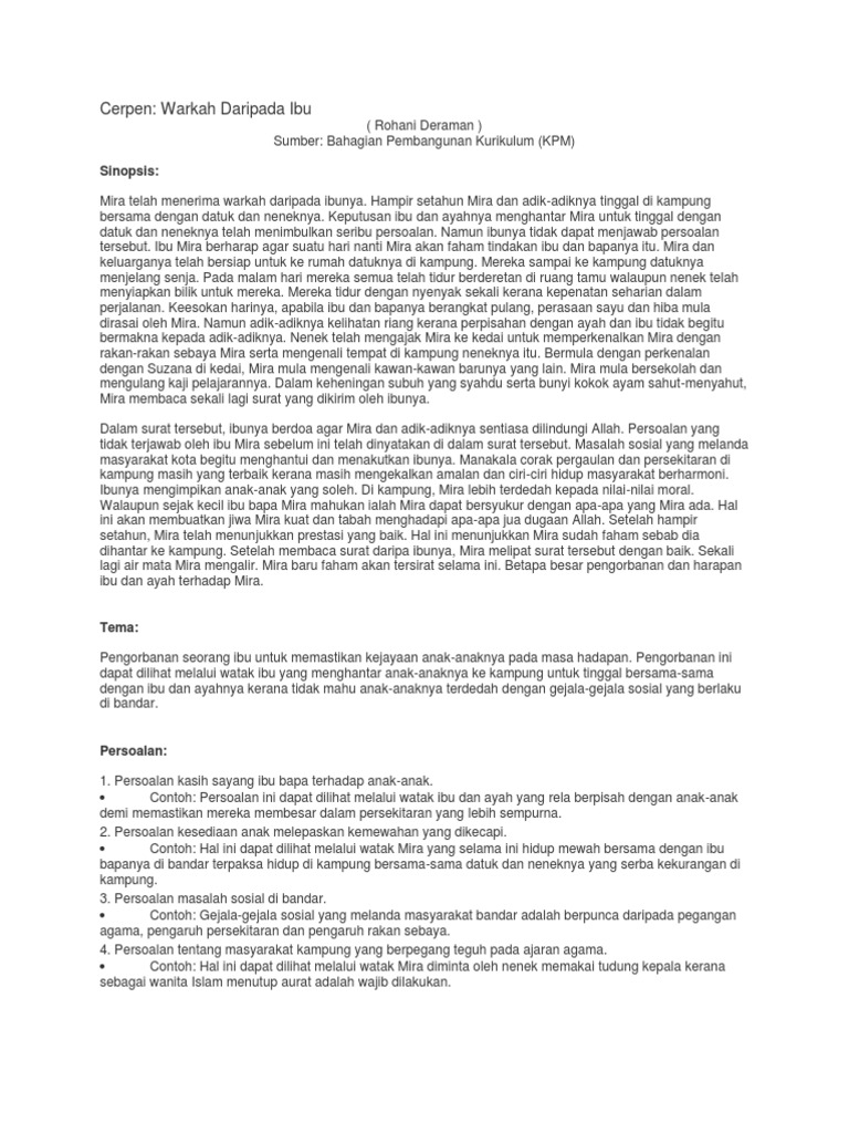 Cerpen Warkah Daripada Ibu Sinopsis
