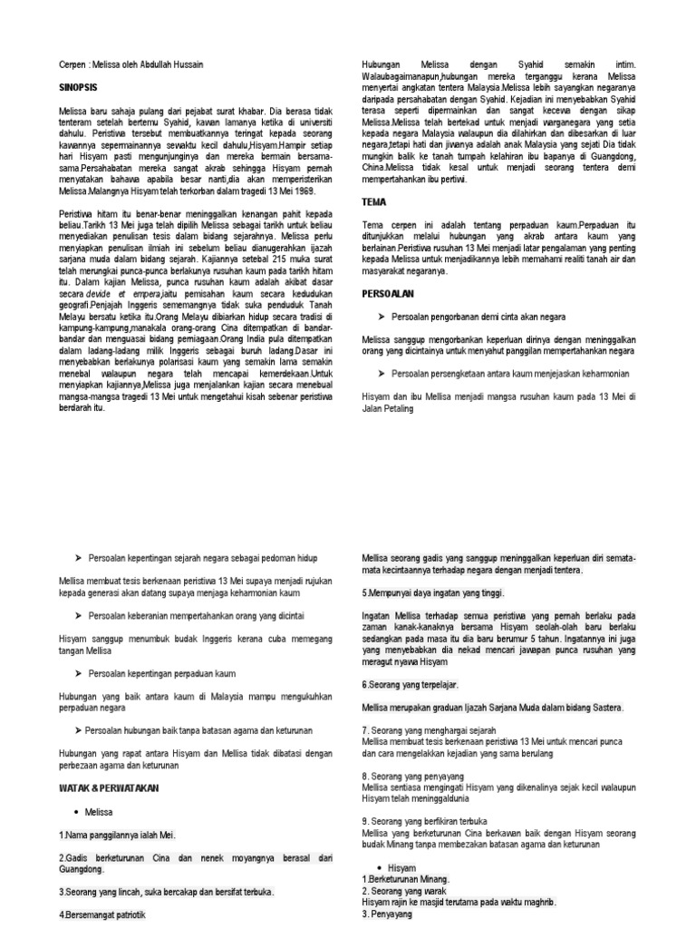 Komsas Tingkatan 4 Cerpen Annyss Sophilea