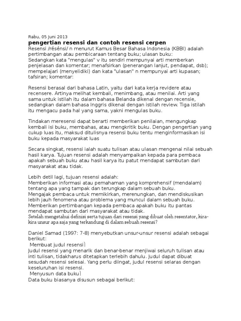 Pengertian Resensi Dan Contoh Resensi Cerpen Pdf Document