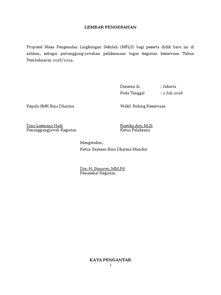 Contoh Lembar Pengesahan Proposal Kegiatan Lengkap Seputarpembahasan Com