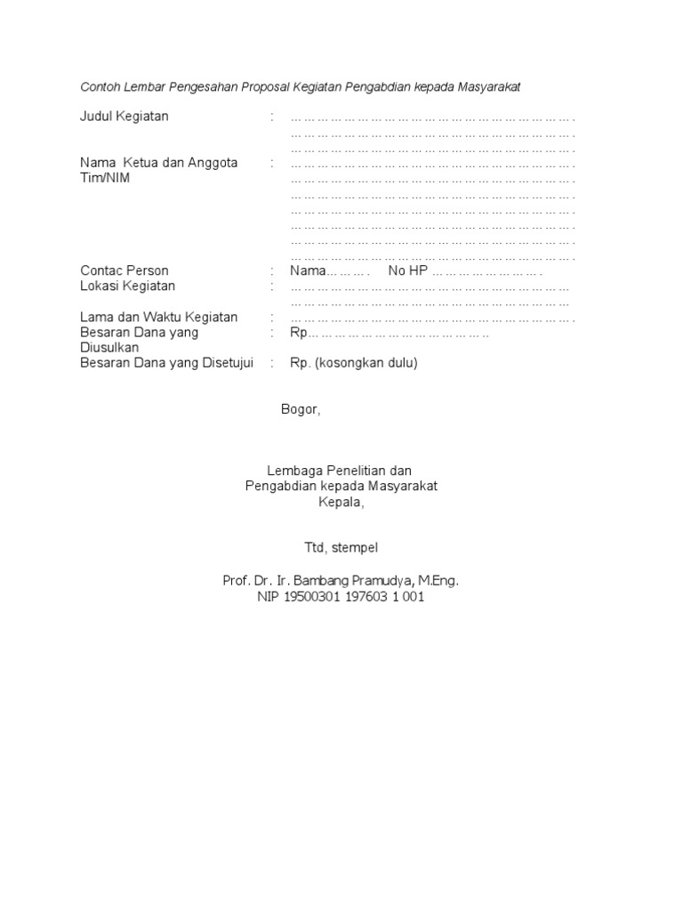Contoh Lembar Pengesahan Proposal Kegiatan Pengabdian Kepada Masyarakat