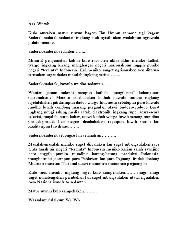 Kumpulan Teks Pidato Bahasa Jawa Cinta Tanah Air Kumpulan Referensi Teks Pidato