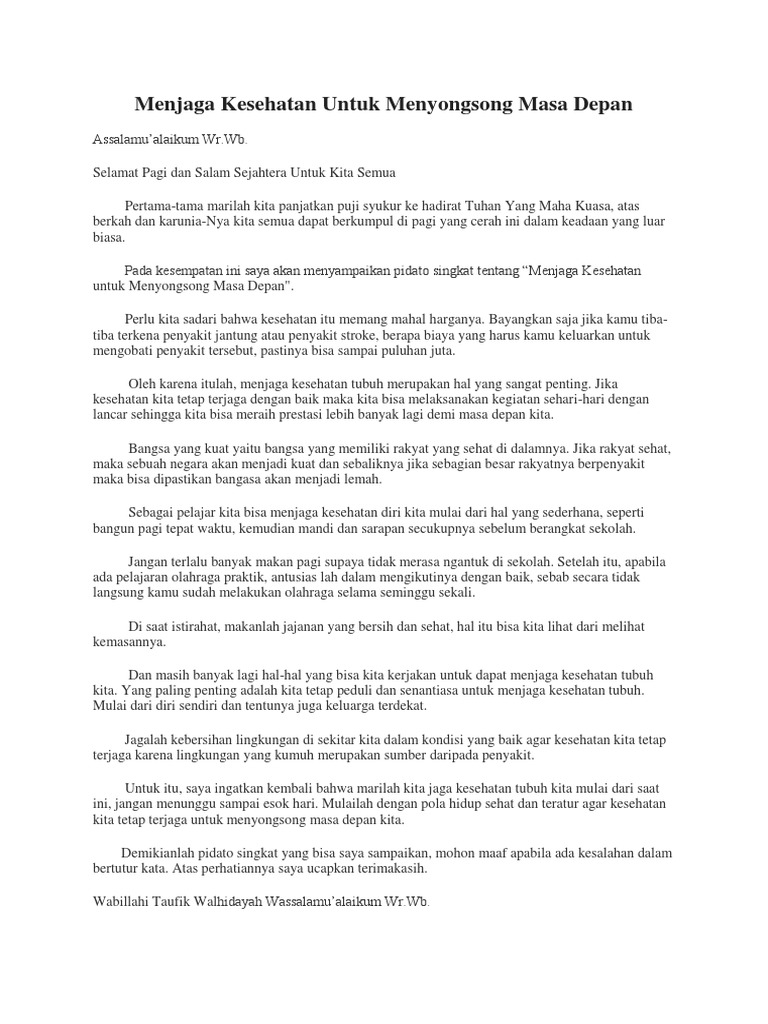 Disediakannya tong sampah pasti selalu By. Secara garis besar sebuah naskah pidato memuat salam pembuka pendahuluan isiinti pidato kesimpulan dan penutup seperti yang sudah saya sampaikan di. Pertama-tama marilah kita.