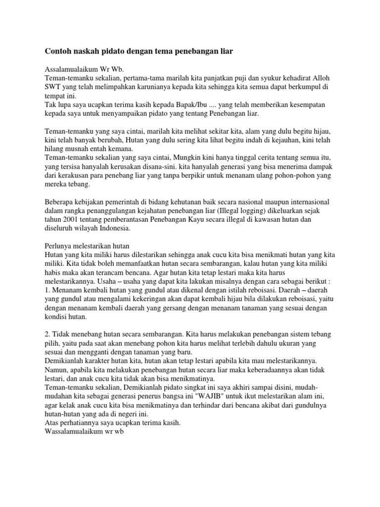 Contoh Naskah Pidato Dengan Tema Penebangan Liar
