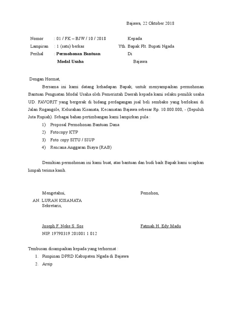 Nah kalian sudah pasti tidak asing lagi dengan yang namanya proposal itu loh yang dipake buat bermohon. Contoh Proposal Bantuan Dana Usaha Kecil PeroranganMohammad yasin yusuf al fadholi al katiri seksi humas. Besar harapan saya untuk dapat mendapatkan bantuan modal usaha ini.