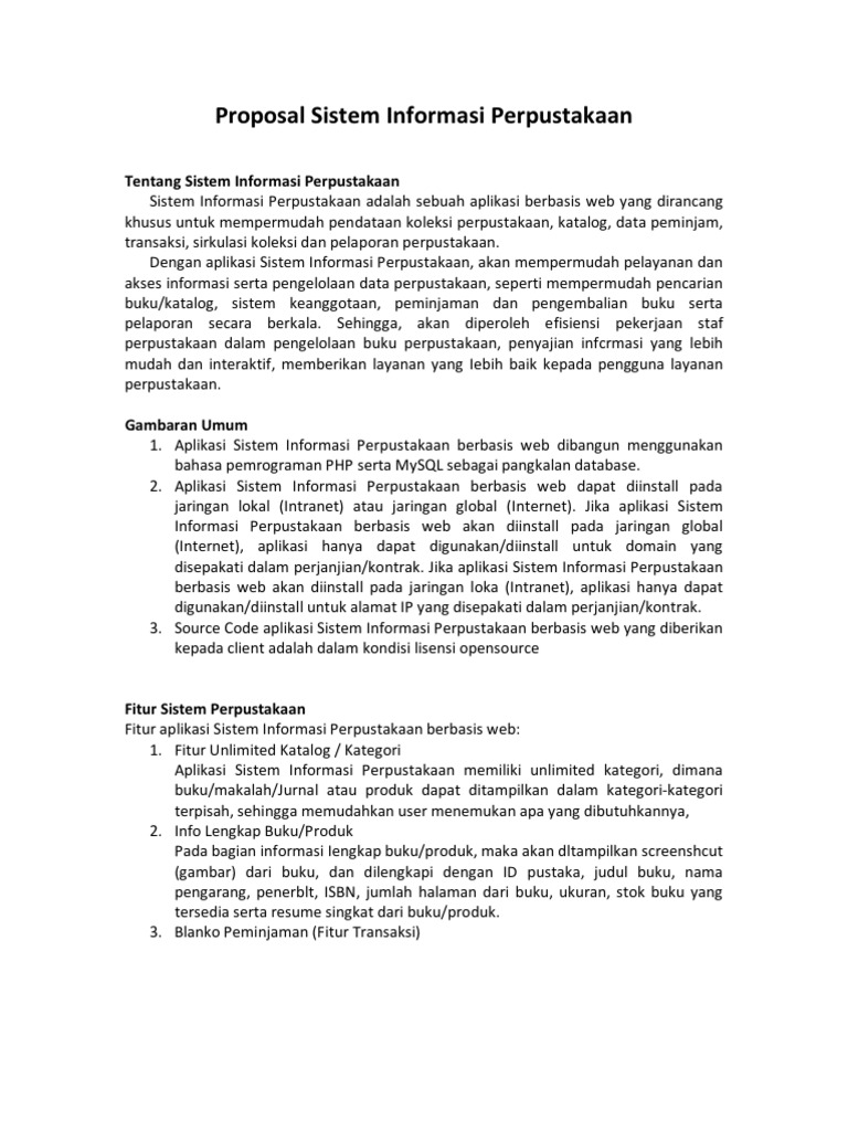 Proposal Sistem Informasi Perpustakaan Berbasis Web Docx