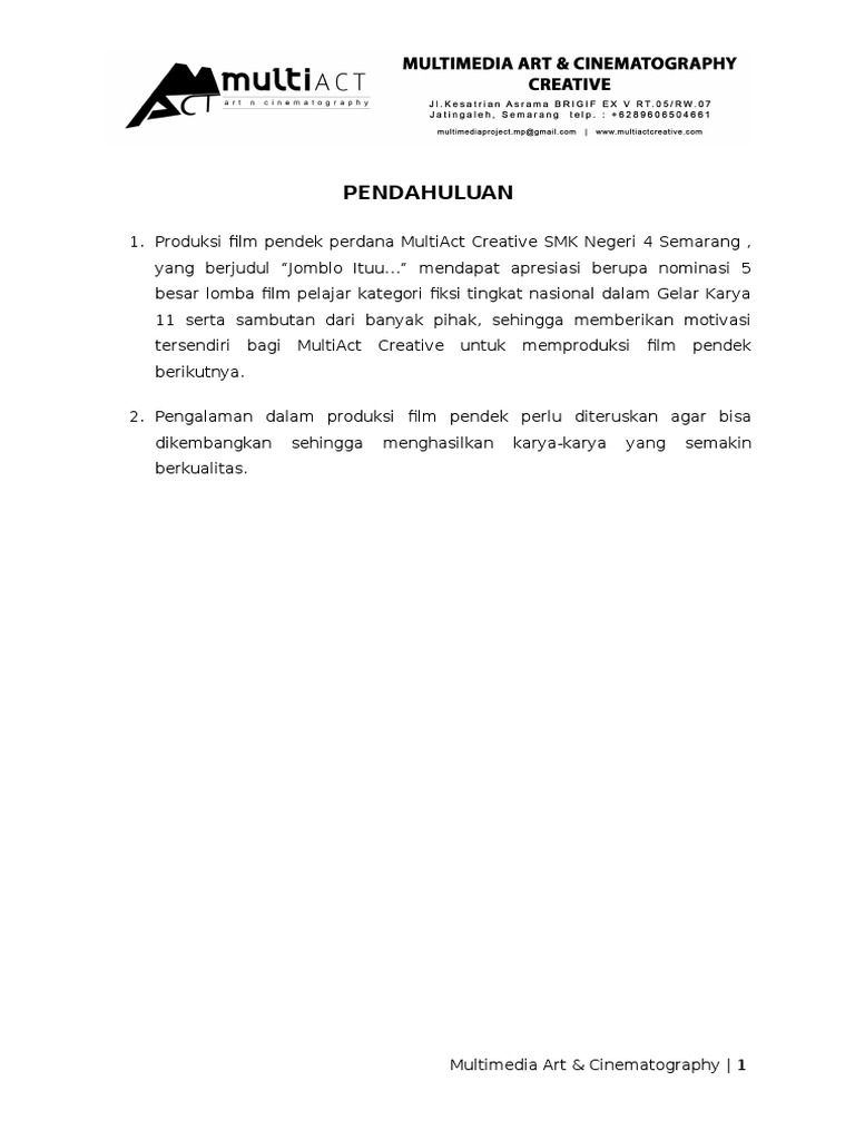 Klik di sini untuk informasi file lengkap proposal pembuatan film pendek selengkapnya. Contoh Proposal UKK Multimedia 2020 Film Pendek - awiracr 14 Feb 2020.