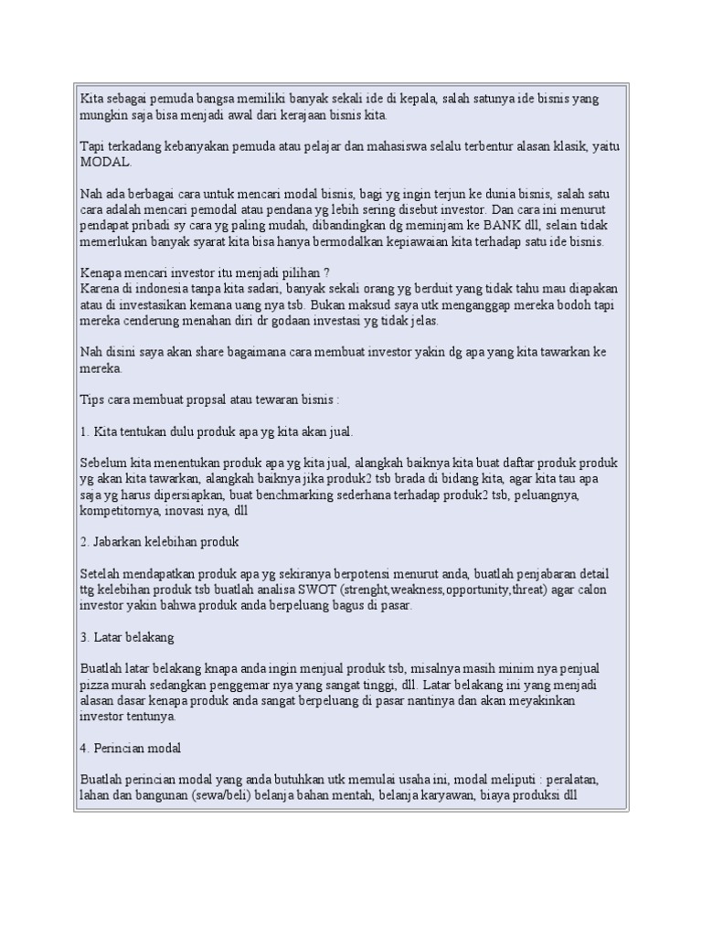 Contoh Proposal Pengajuan Modal Usaha Ke Investor Pdf
