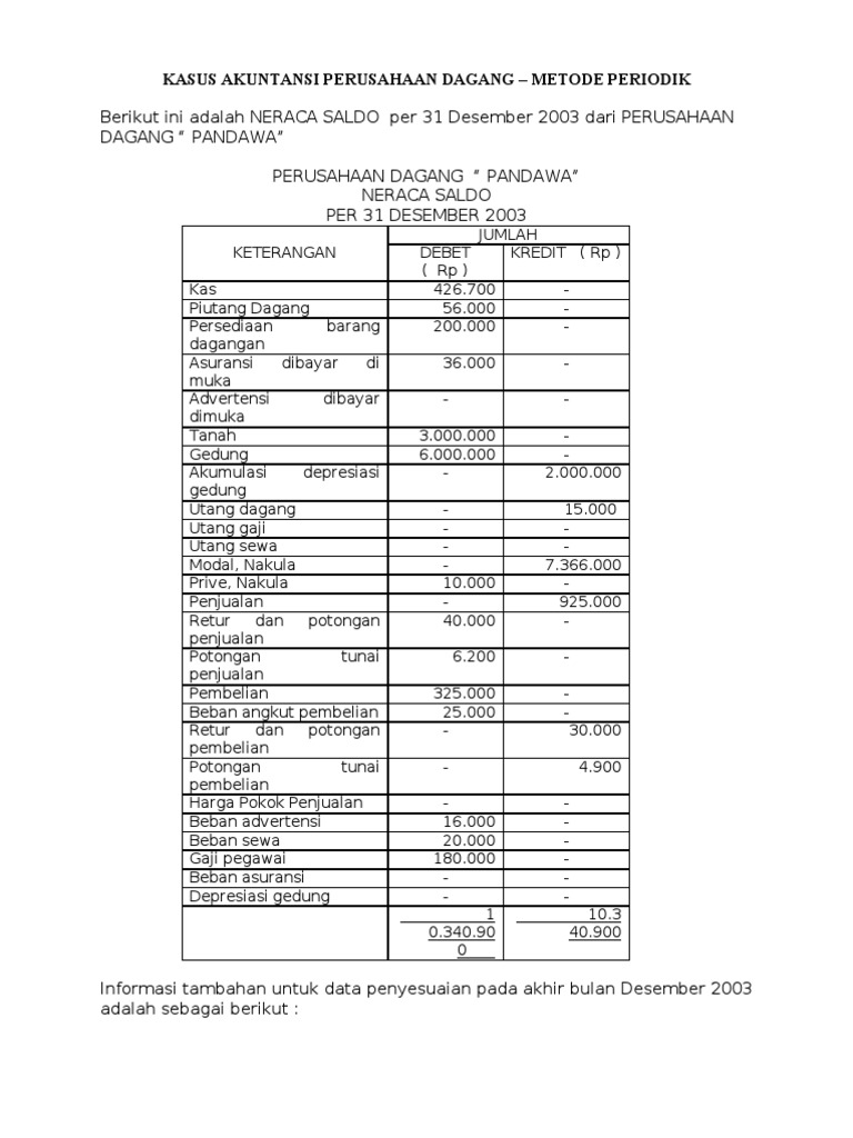 28 Contoh Soal Akuntansi Perusahaan Dagang Metode Periodik Kumpulan Contoh Soal