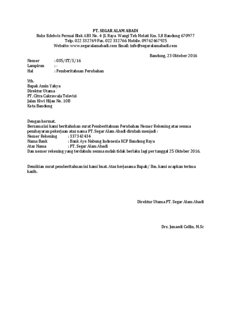 Contoh Surat Pemberitahuan Perubahan Perusahaan Dari Cv Ke Pt Contoh Seputar Surat