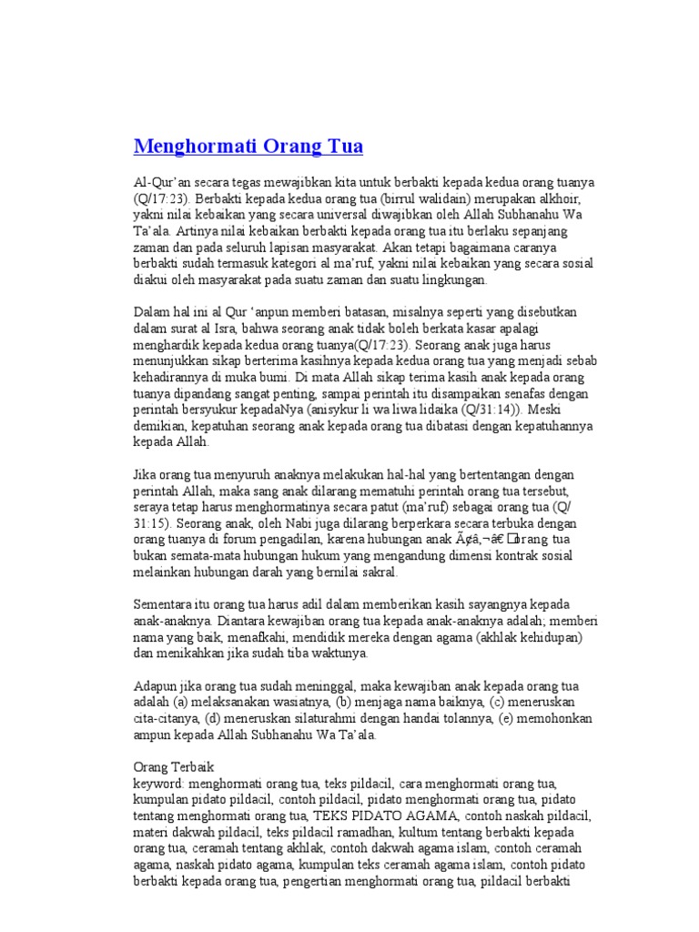Contoh Teks Ceramah Singkat Berbakti Kepada Orang Tua D47ewzw29dn2