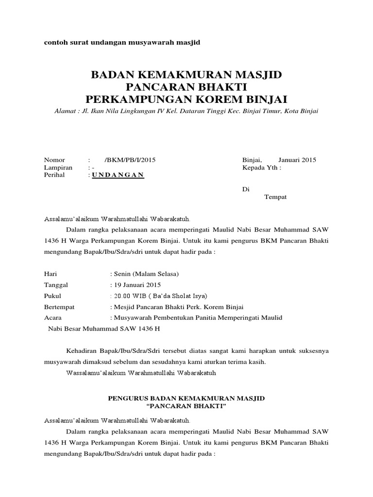 Contoh Surat Undangan Musyawarah Masjid Sample Surat Undangan