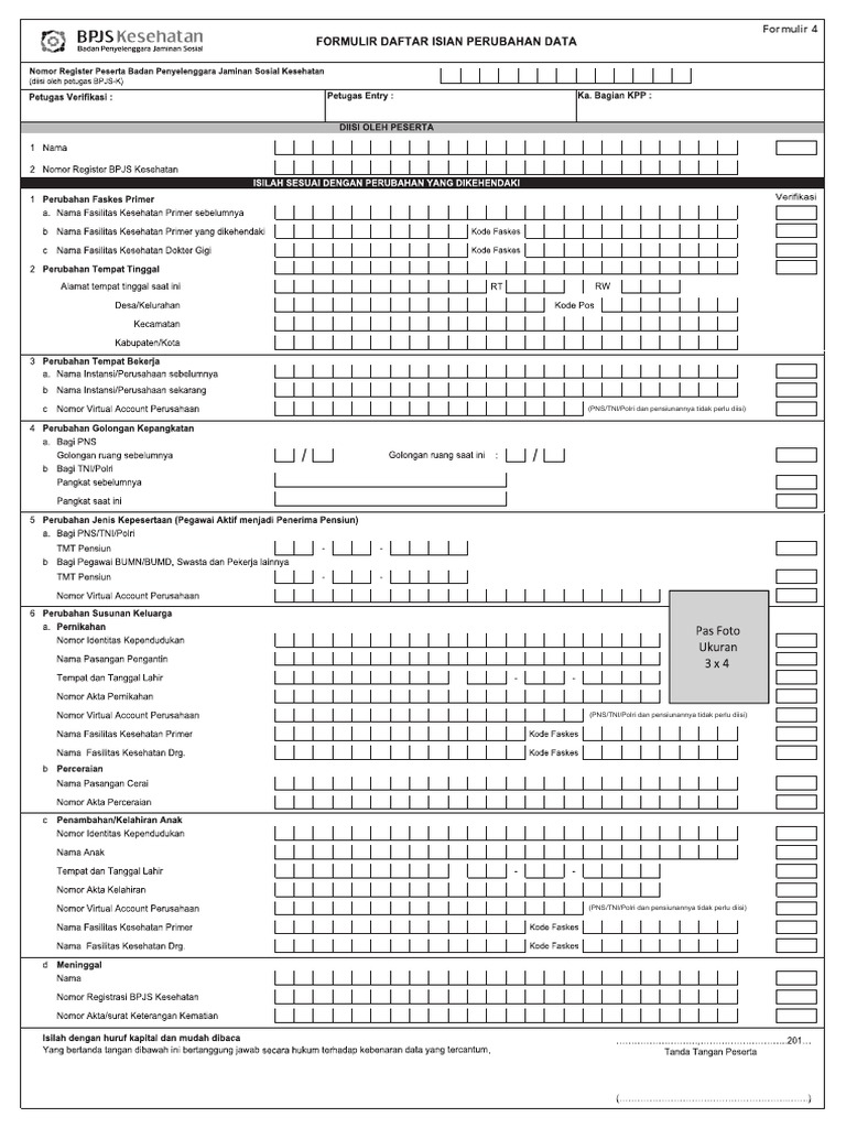 Formulir Bpjs Kesehatan Perubahan Data Pigura