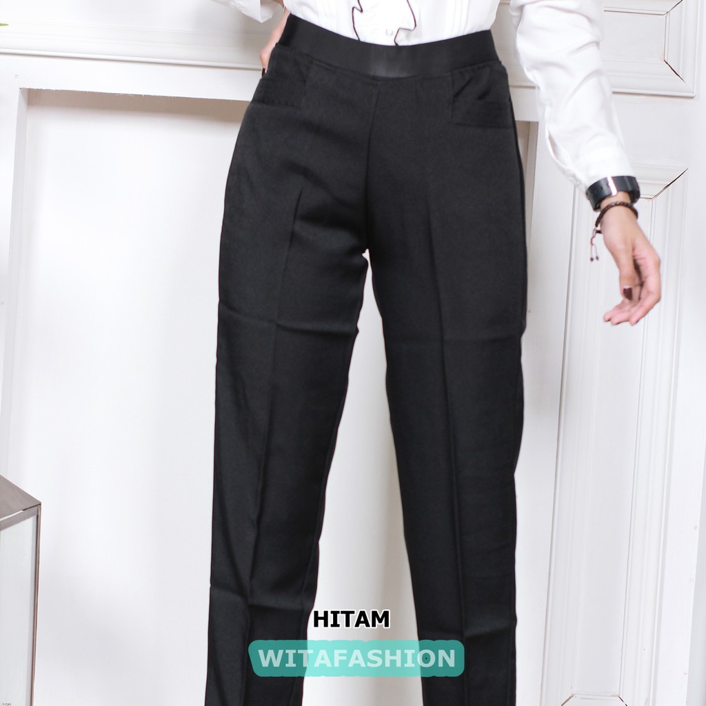 Celana Bahan Panjang Wanita Pinggang Karet Kerja Cewek Kantor Katun Kain Formal Slimfit Witafashion Shopee Indonesia