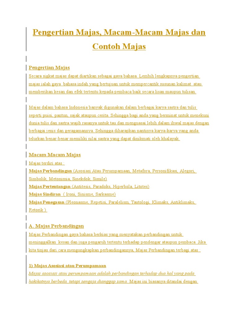 Majas Pengertian Jenis Dan Contohnya Lengkap