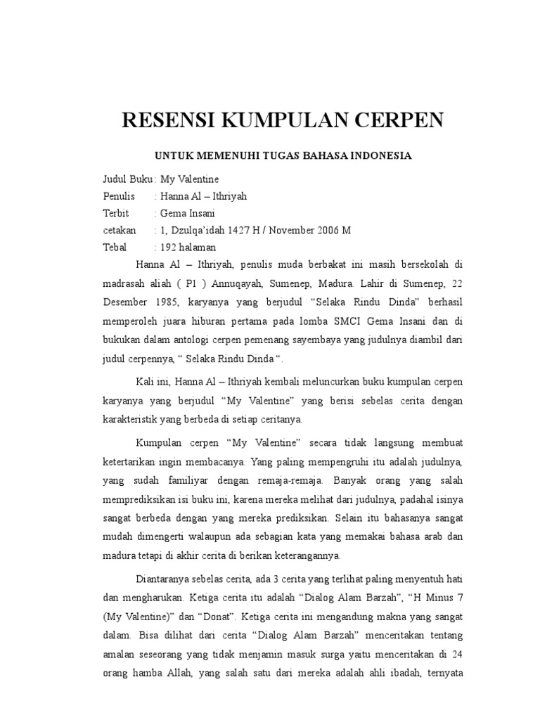Doc Resensi Kumpulan Cerpen Fian Pandensolang Academia Edu