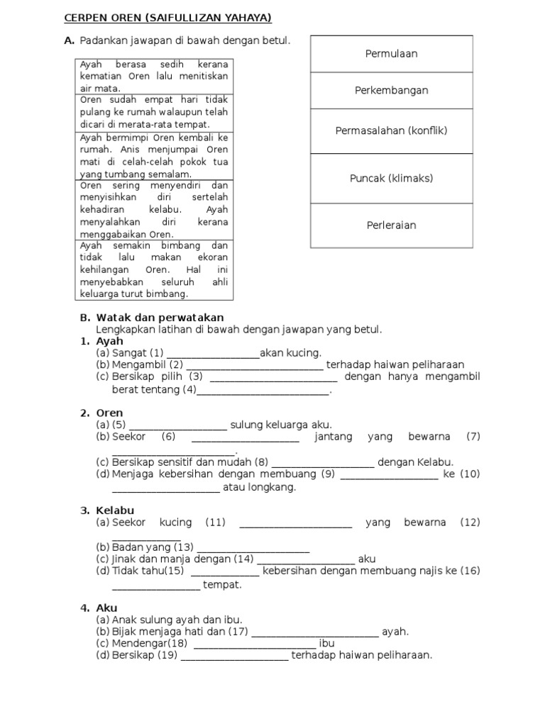 Kumpulan Cerita Lucu Sinopsis Cerpen Oren Tingkatan 1