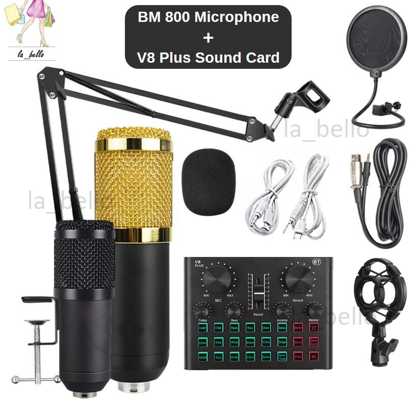 Paket Lengkap Rekaman V8 Soundcard Dengan Microphone Bm800 Untuk Cover Lagu Karaoke Streaming Shopee Indonesia