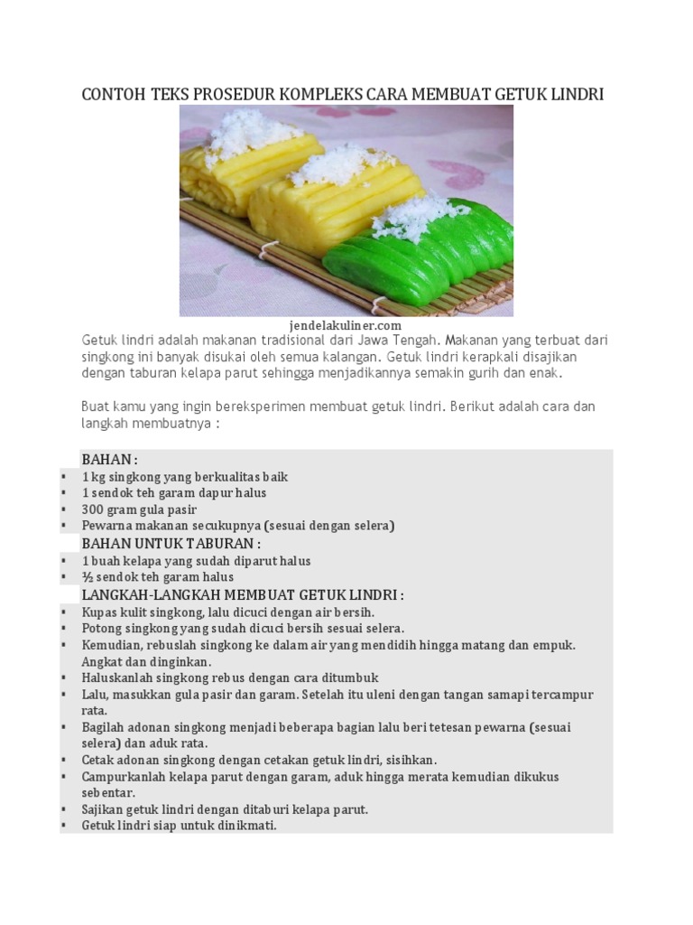 Contoh Teks Prosedur Kompleks Cara Membuat Getuk Lindri