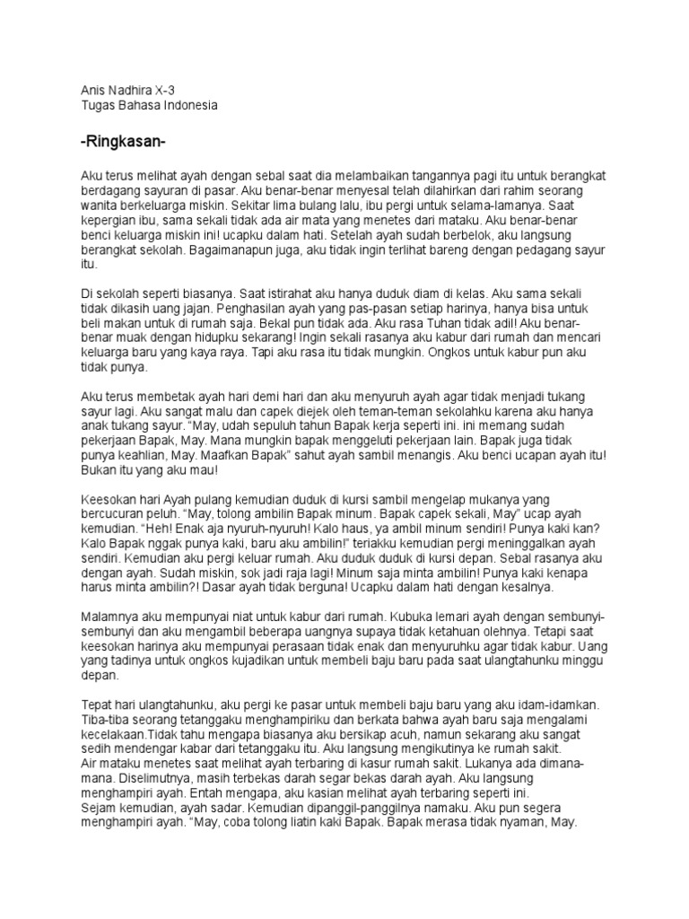 Arin dan Mimpinya Arin berasal dari keluarga yang cukup harmonis yang terdiri dari ayah ibu dan dengan 2 anak perempuan mereka yaitu Arin dan Raty. Cerpen Untuk Ayah Nov 04 2020 DOC cerpen untukmu ayah rizki anggraini - Academiaedu Cerpen Ayah Cerpen Rahasia ayah Cerpen Ayah Bindo DOC Cerpen Aku Rindu Ayah Marzuki Muhammad - Academiaedu Cerpen rumah dari tangan ayah Cerpen Ayah Page 198 - BukuPraktikBaik Jual Kumpulan Cerpen AYAH - Kab. Jika diibaratkan sebuah bangunan maka unsur intrinsik adalah komponen-komponen bangunan tersebut.