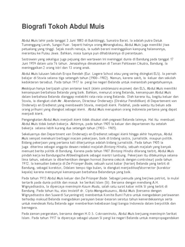 Nama biografi pahlawan indonesia materi sejarah mengenal jendral besar abdul harris nasution abdul kadir abdul muis sastrawan sastrawan angkatan balai pustaka web mahasiswa des abdul muis termasuk tokoh angkatan balai. Abdul Muis merupakan pengurus Sarekat Islam dan mendirikan komite Bumiputera bersama Ki Hadjar Dewantara. Tak banyak yang dapat diketahui sebelum Abdoel Moeis muda mengenyam pendidikan dasarnya pada sekolah Belanda tingkat persiapan Stovia di Bukittinggi untuk kemudian menuju.