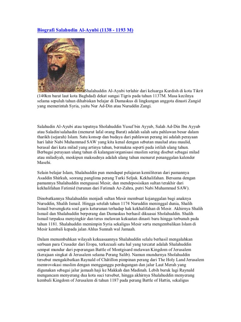 Ceritakan Biografi Singkata Salahuddin Yusuf Al Ayyubib Al Adilc Al Kamil Brainly Co Id