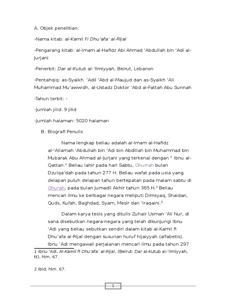 Studi Kitab Al Kamil Fi Dhu Afa Al Rijal
