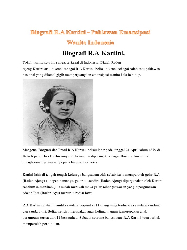 Biografi Kartini Docx Biografi R A Kartini Wanita Indonesia R A Kartini Atau Raden Ayu Kartini Adalah Salah Satu Sosok Wanita Yang Menjadi Pelopor Course Hero