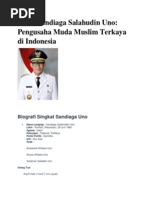 Sandiaga Salahudin Uno the new deputy governor of Jakarta was born in Pekanbaru Riau on June 28 1969. Dia merupakan anak dari Razif Halik Uno dan Mein R. Anneesha atheera uno amyra atheefa uno Sulaiman Saladdin Uno semo.