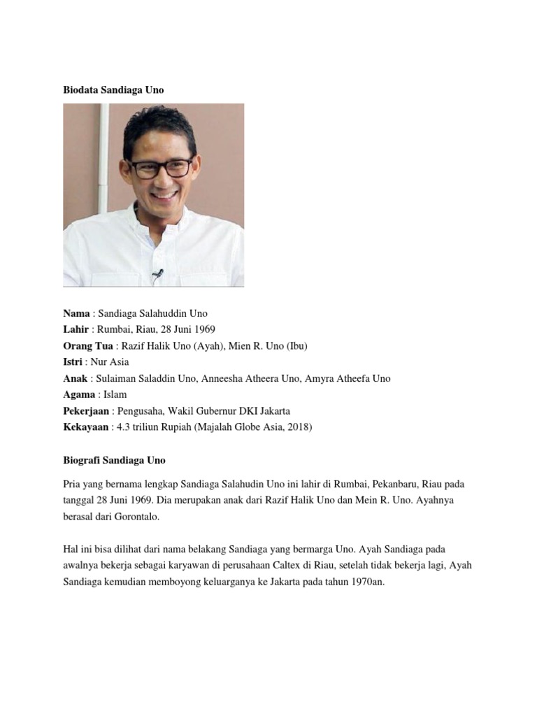 Biografi sandiaga uno dalam bahasa inggris. Kali ini kita akan melihat biografi pahlawan dalam bahasa Inggris lagi nih. Wishnutama - Wikipedia bahasa Indonesia ensiklopedia bebas. Sandiaga Salahuddin Uno Tempattanggal lahir.