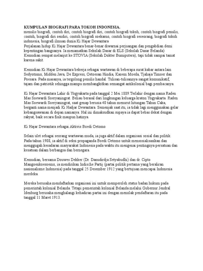 Kumpulan biografi tokoh Indonesia dan dunia populer menginspirasi seperti pahlawan nasional pengusaha sukses ilmuwan sains pendiri startup pemain sepakbola ahli politik agama serta tokoh terkenal lainnya terlengkap. Tujuan teks biografi adalah untuk mengedukasi menginspirasi dan memotivasi masyarakat melalui cerita dari seorang tokoh. Buku karangan Haidar Musyafa ini menceritakan kehidupan mantan Ketua Majelis Ulama Indonesia MUI Buya Hamka.