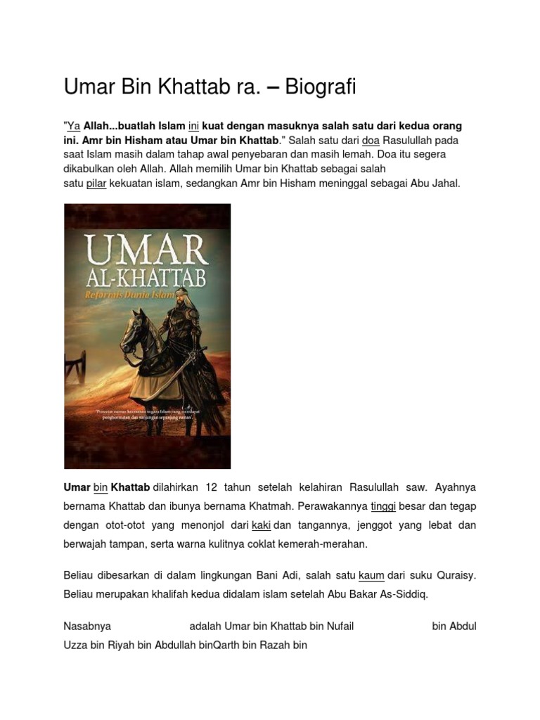 Biografi umar bin khattab ra. Umar bin Khattab ra. Biografi Umar Bin Khattab RA adalah buku yang ditulis dalam bentuk kisah-kisah lepas dan berbagai ibrah pelajaran. Kelak beliau menjadi Khalifah kedua menggantikan Abu Bakar as-Shiddiq ra dan menjadi.