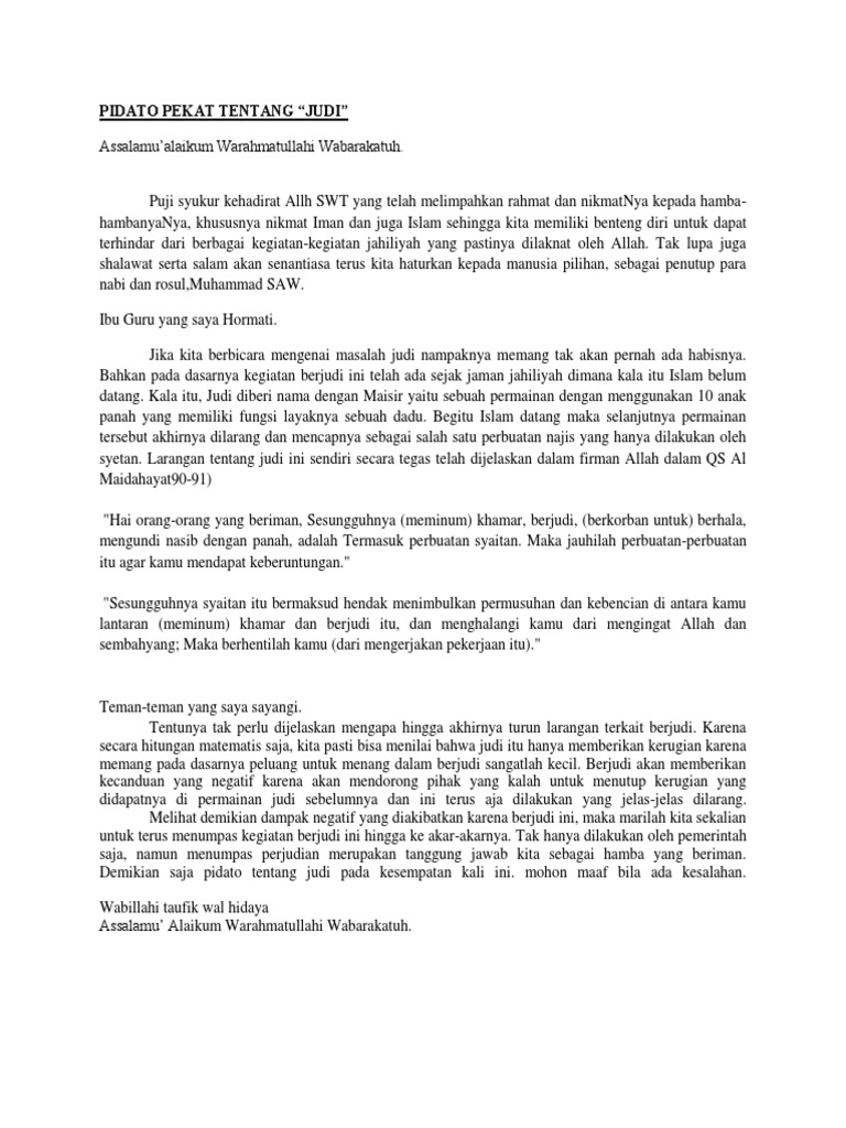 Contoh Naskah Pidato Tentang Judi Singkat Jago Berpidato Apa Yang Kamu Cari Ada Disini