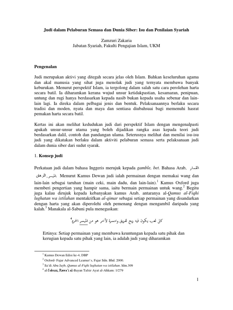 Judi Dalam Pelaburan Semasa Dan Dunia Siber Isu Dan Penilaian Syariah Zamzuri Zakaria