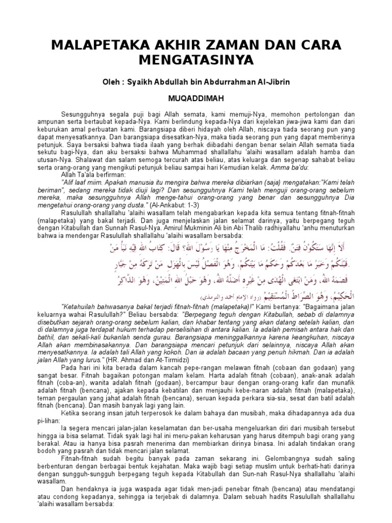 Malapetaka Akhir Zaman Dan Cara Mengatasinya