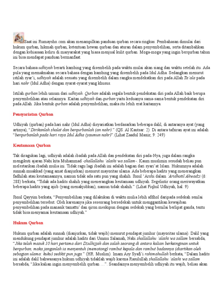 Hadits Tentang Hukum Qurban Jelaskan Maksud Dari Hadits Tersebut Sumber Ilmu