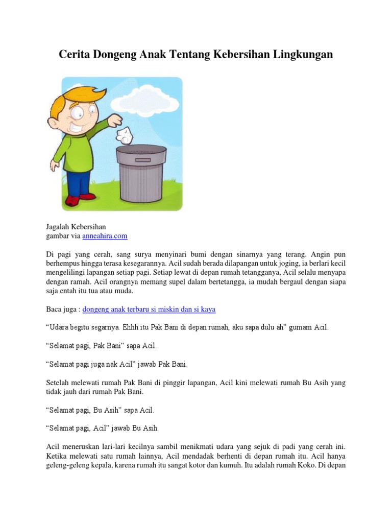 Cerita Dongeng Anak Tentang Kebersihan Lingkungan