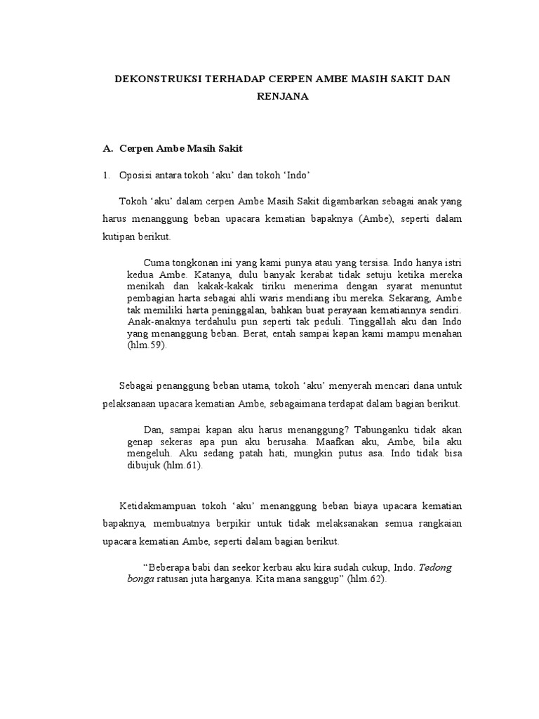 Dekonstruksi Terhadap Cerpen Ambe Masih Sakit Dan Renjana