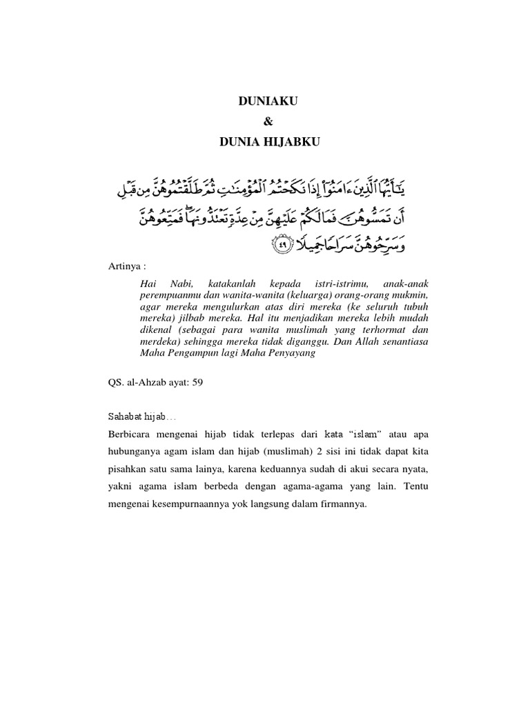 Apa Arti Jilbab Bagimu Cerpen Karangan. Oleh karena itu saya Catatan. Cerpen Muslimah Berbagi merupakan cerita pendek karangan Yuliza Rahmawati kamu dapat mengunjungi halaman khusus penulisnya untuk membaca cerpen cerpen terbaru buatannya.