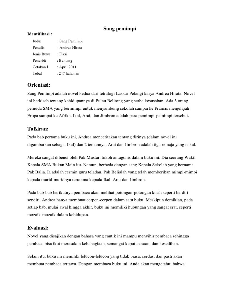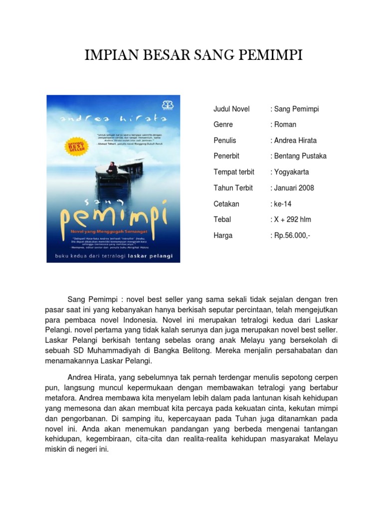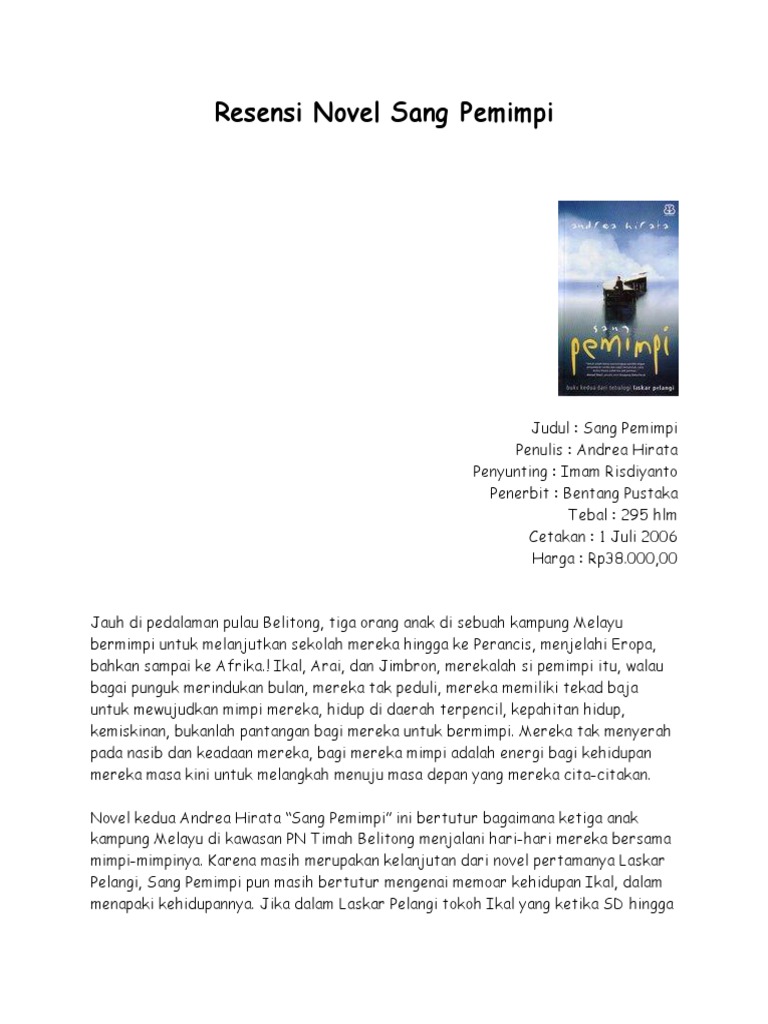 The novel is written by adored Indonesian author Andrea Hirata. Cerpen Puisi Sajak gambar dan karya-karya yang lainnya. Teks Ulasan Novel Sang Pemimpi 6.