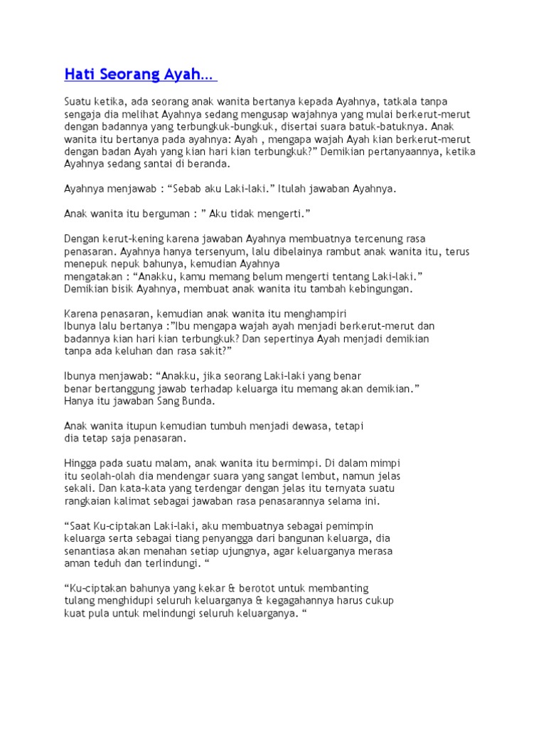 Rumput-rumput hijau yang tertiup angin sore seakan-akan bersuka. Cerpen Keluarga Cerpen Nasihat Cerpen Sedih. Kasih Sayang Seorang Ayah.